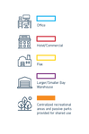 Acceptable uses including mixed-use, apartment, hotel, office, building, retail, medical clinic/hospital, industrial, distribution, warehouse, greenhouse, and more.